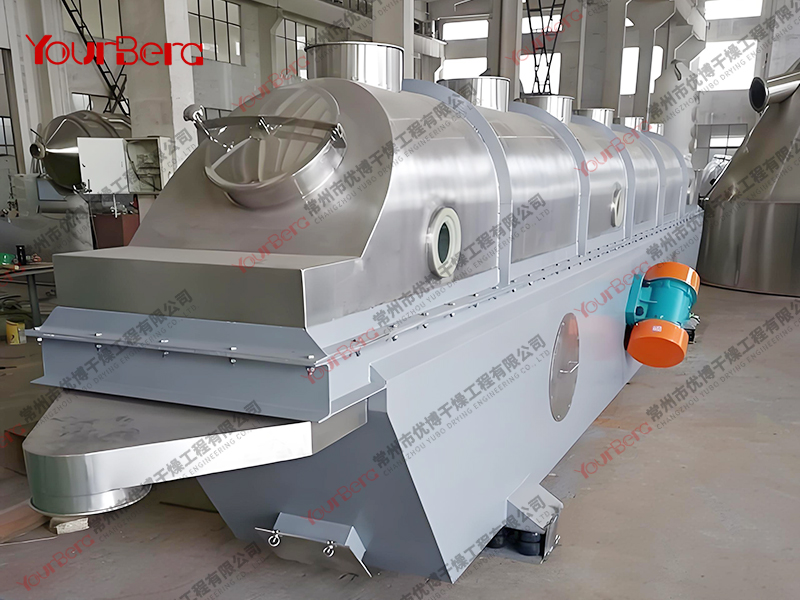 普通流化床干燥機在干燥顆粒物料時,可能會存在下述問題:(1)當顆粒粒度較小時形成溝流或死區;(2)顆粒分布范圍大時夾帶會相當嚴重;(3)由于顆粒的返混,物料在機內滯留時間不同,干燥后的顆粒含濕量不均;(4)物料濕度稍大時會產生團聚和結塊現象,而使流化惡化等。為了克服上述問題,出現了數種改型流化床,其中振動流化床就是一種較為成功的改型流化床干燥機。
