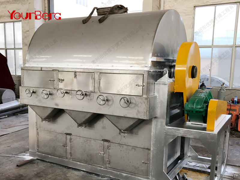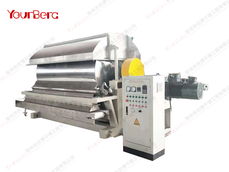 3、干燥時間短。物料的干燥周期一般只有10-300秒,在適合于熱敏性物料。若將滾筒干燥機設置在真空器中,則可在減壓條件下運行。