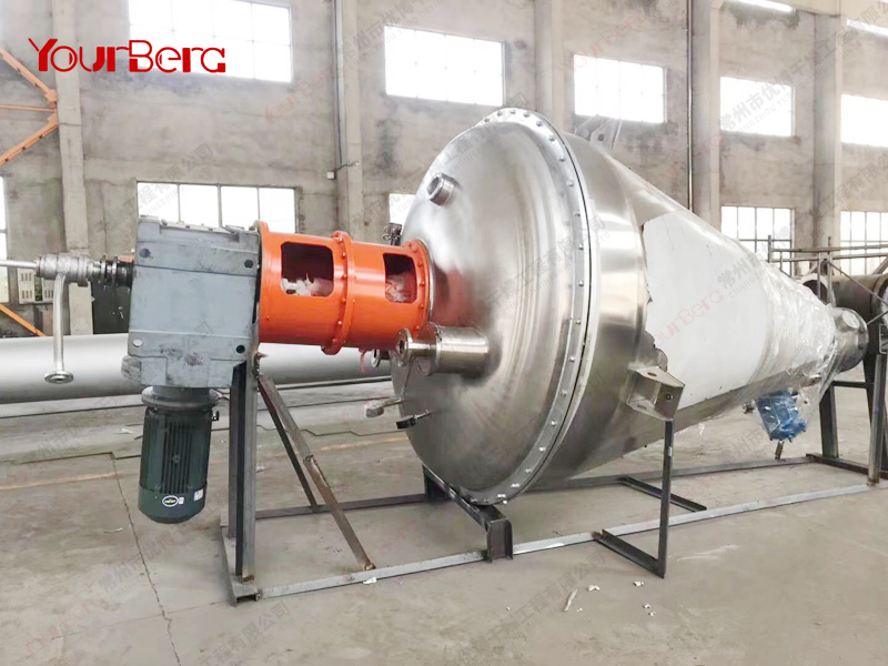 單錐真空干燥機機械結構簡單有效,操作人員容易理解,簡單的按鈕控制使操作過程非常簡單。一些維修保養工作甚至在沒有專業人員的情況下也可以順利快速完成,設置的人孔可以很容易地調整和維護運動螺桿,無需復雜的拆卸便可完成。該設備的易損件非常少,軸承箱等驅動單元設置在料倉的頂部,用戶在維修時很容易將整個單元拆離,而且頂部的驅動單元位置空間也比較充裕。