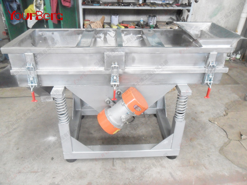 本機上部采用快拆式手柄,把整機連成一個整體,上蓋全密封、有效防止物料在過篩時由于振動而產生粉塵飛揚。篩體下部安裝振動電機,有效保證了物料的結構緊湊,下部采用彈簧減振,使整機在平穩狀態下工作。下面底座采用可調式,可調節正在過篩時的篩面傾斜角度,根據物料特性以取得過篩效果。